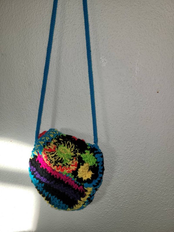 Freeform motif colorful crochet bag small with pocket and liner